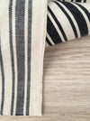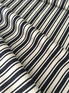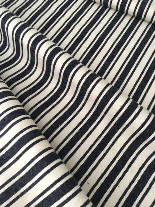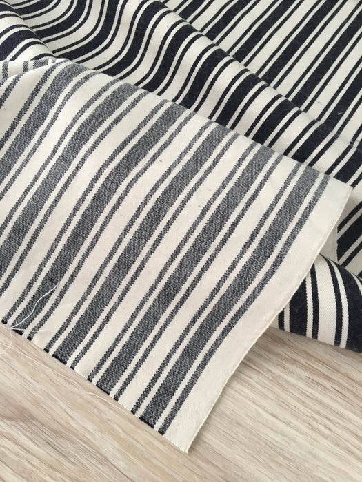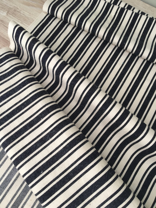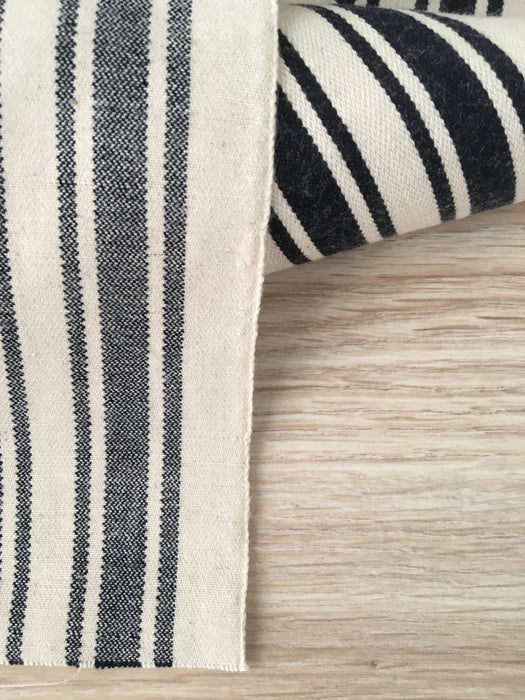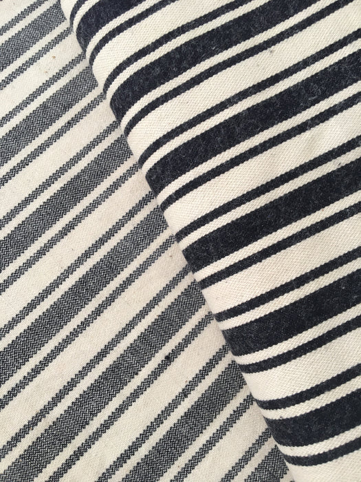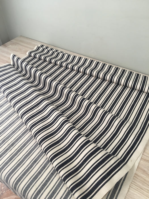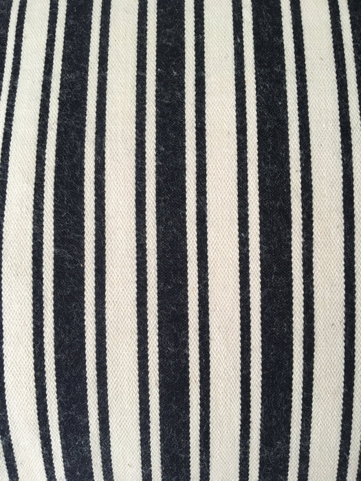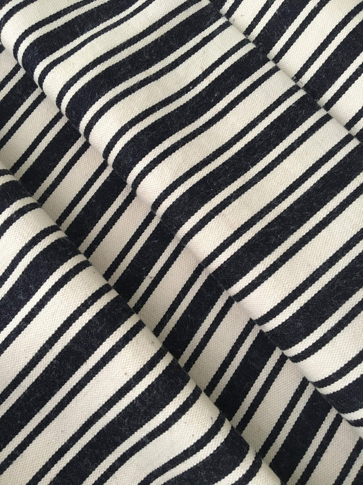 Splendid white and navy blue antique striped Swedish ticking. It's a classic ticking pattern. It’s a very dense sateen, hand-woven. It's as we found it, perfect.